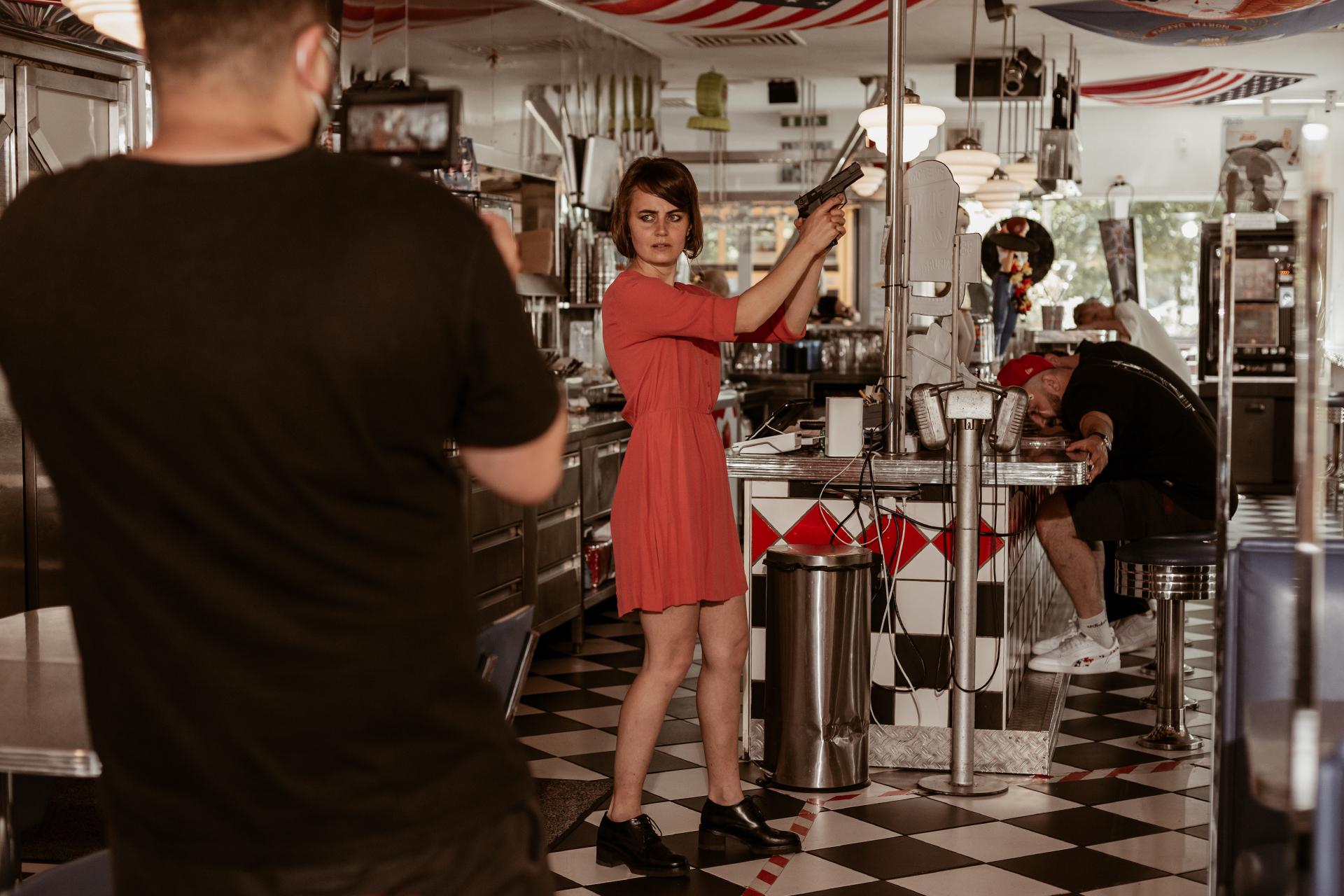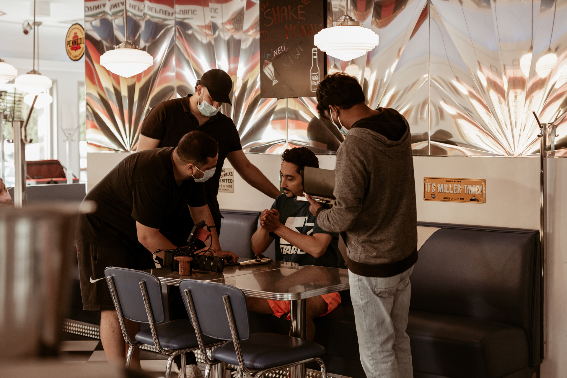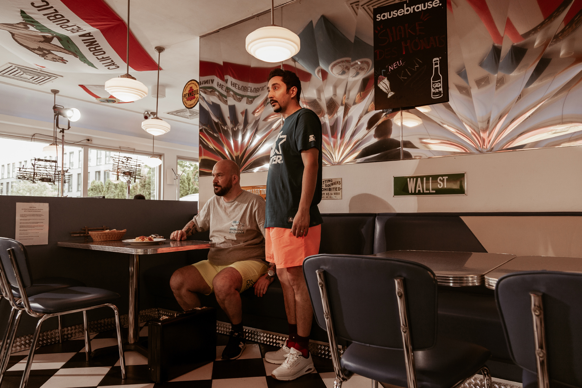 Gedreht wurde im Star Diner in Essen, einem Ort, der nicht nur optisch einiges hergibt, sondern auch mit leckeren Burgern und den (für mich) weltbesten Milchshakes überzeugt. Während des Drehtages habe ich einige Einblicke vor und während der Produktion eingefangen. Diese Fotos lagen bisher im Archiv, also höchste Zeit, dass sie auch mal ins Rampenlicht dürfen.